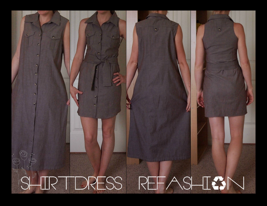 As per usual, Pinterest makes me think I can do things whether or not I actually have the skills to do them. Hence the refashion. Picked up this way-too-big shirtdress for $3 at the thrift store when I was looking for fabric for my adopt me vests. I messed up on the side seam, so I added some lace under the arms, and I turned part of the bottom section that I cut off into a tie belt. Not perfect… but not bad for my first try! I’ll definitely wear it out in public sometime.
