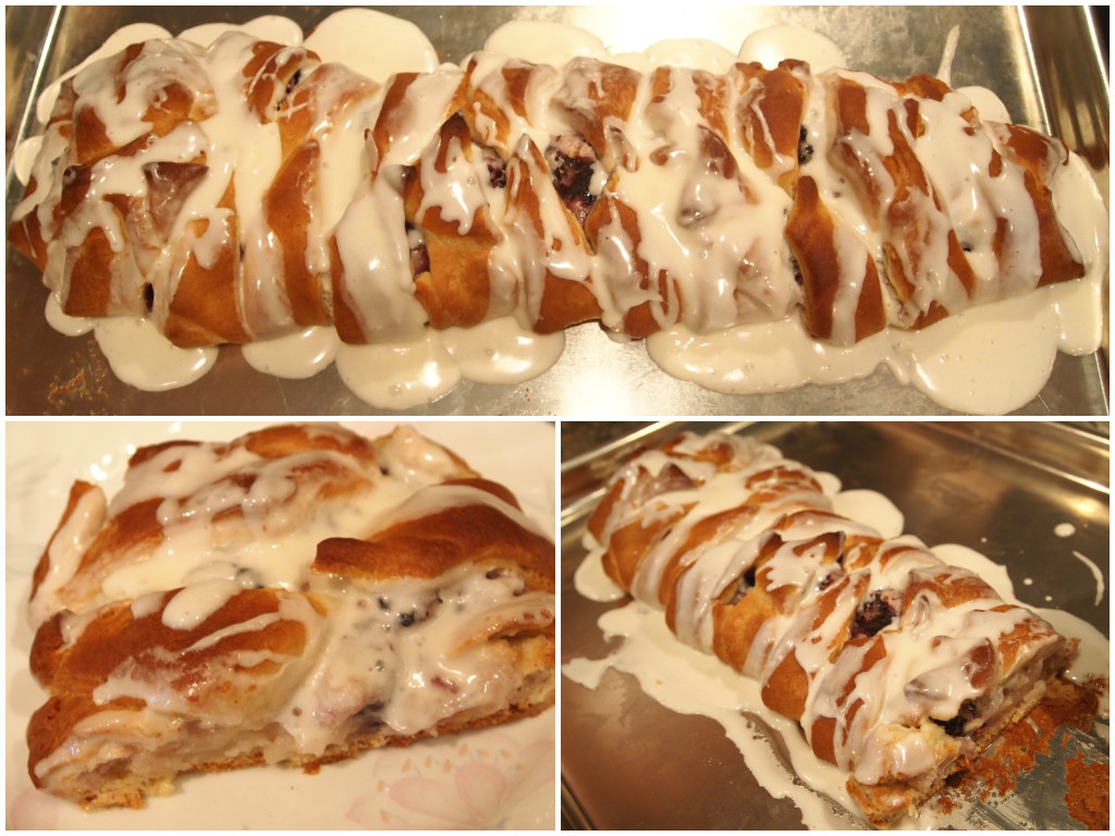 I would like to thank this girl for our delicious breakfast (not as pretty as hers… but definitely tasty – and super easy)! Will have to try this again with different fruits. Mmmm…