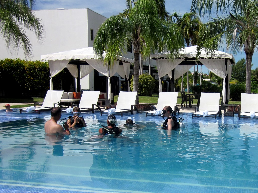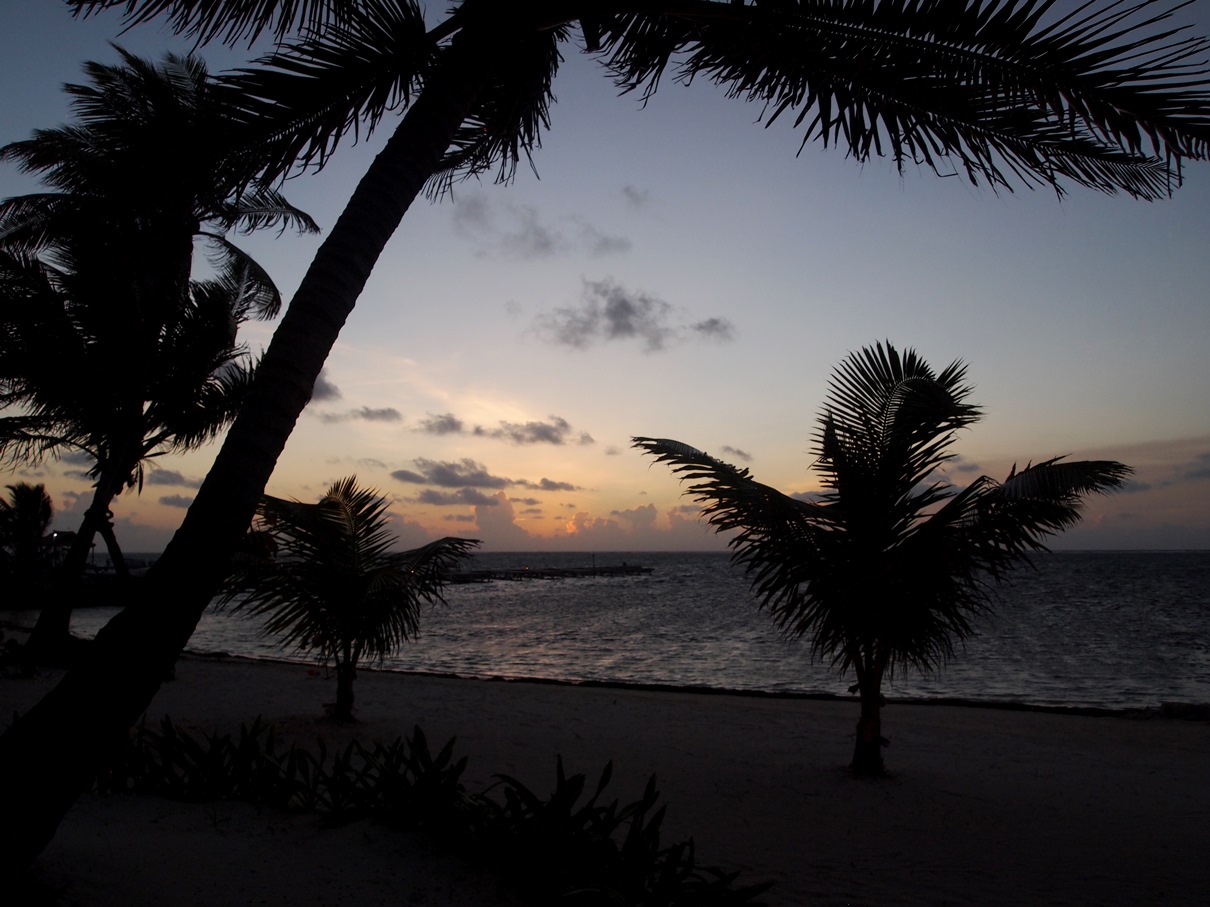 Sunday: Slept in the airport (some) and on the plane (some). Caught our layover and met up with Danny’s family in Charlotte Sunday morning. Took a plane to a plane to a smaller plane to a taxi to a boat – and finally reached the resort (the flight to the island was spectacular) on Ambergris Caye. Once we reached the dock, the resort had someone there to take our bags. During our walk to the front desk, we were given rum punch, and they had a lady waiting to give us massages while we checked in. Once we got settled in, we wandered over to the dive shop right down the beach and signed up for diving later in the week.