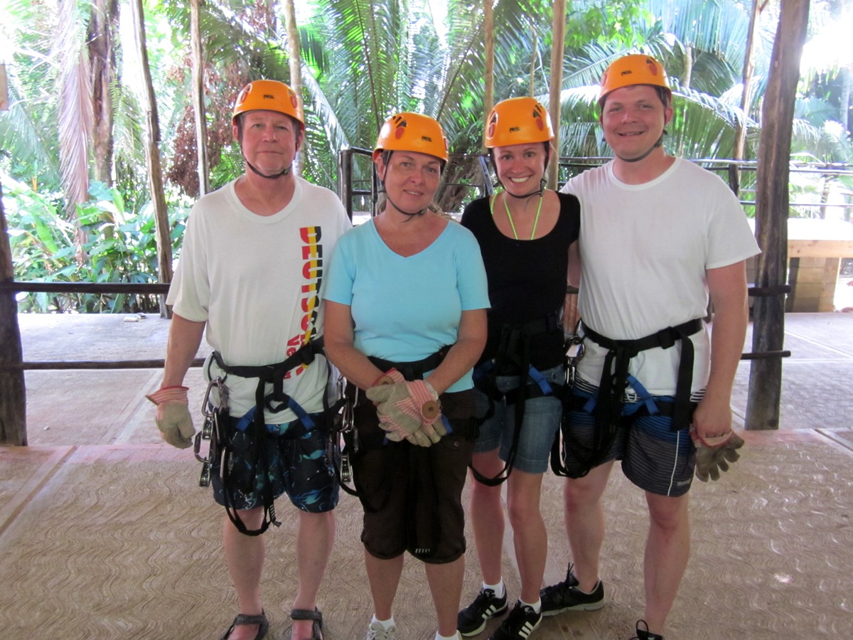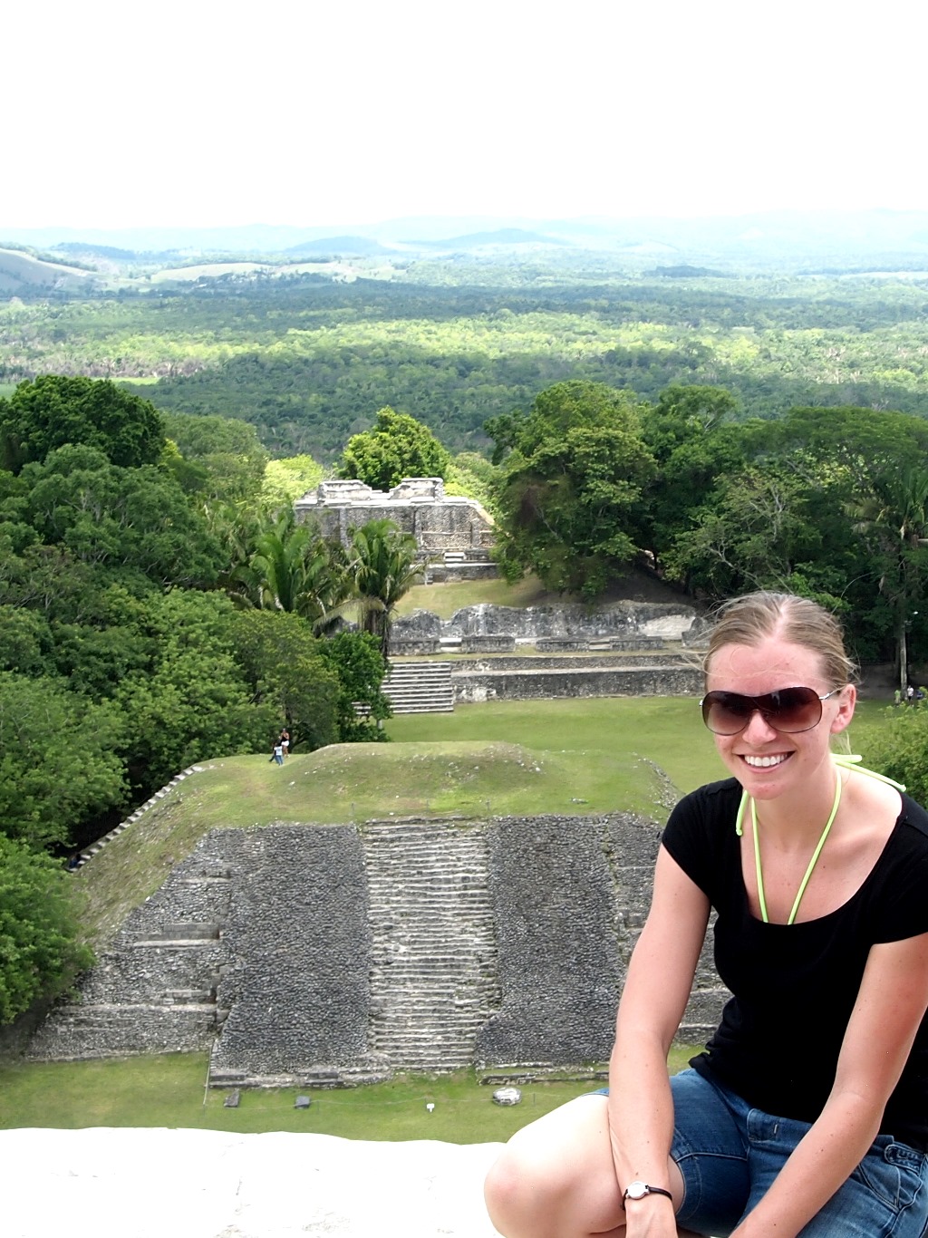 Friday: Our all-day excursion! First we flew back to the mainland (I got to be co-pilot). Then we hopped on a bus with Andre our tour guide and first drove to the opposite (Western) side of Belize, almost to the border to the Xunantunich Mayan ruins (where you had to take a hand-crank ferry across the river). From the top of the ruins, you could actually see Guatemala. It was really cool. We also saw two kinds of monkeys! Then we wandered back and stopped to do zip-lining through the jungle and cave tubing. Both were amazing, although my favorite was the cave tubing. I was kicking myself the whole time because I didn’t bring a waterproof camera. The views were spectacular… nothing like I’ve ever seen before. We made it back just in time for dinner.