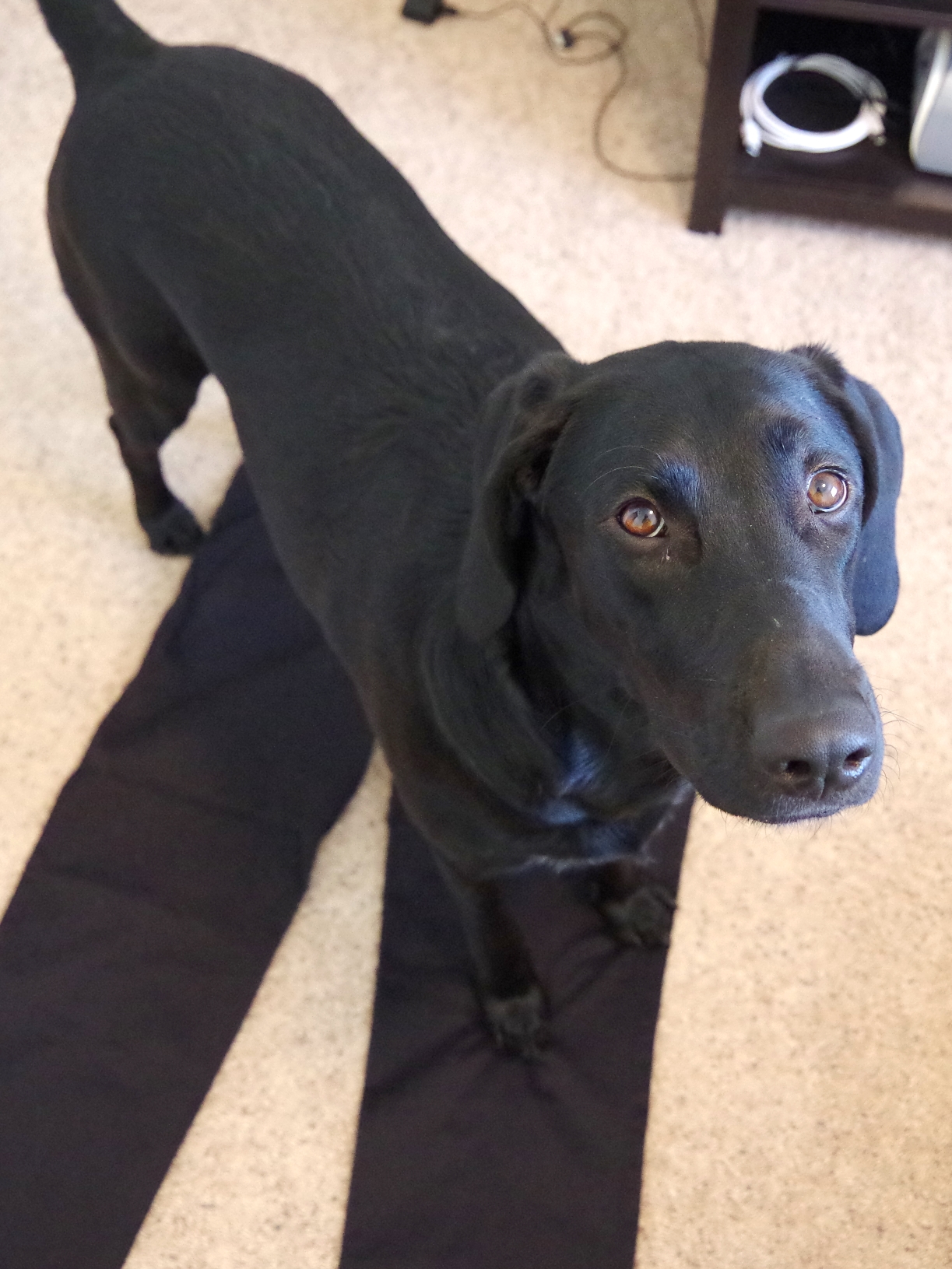 And of course my little helper (standing on the pants before I started cutting… he always has to be the center of my attention):