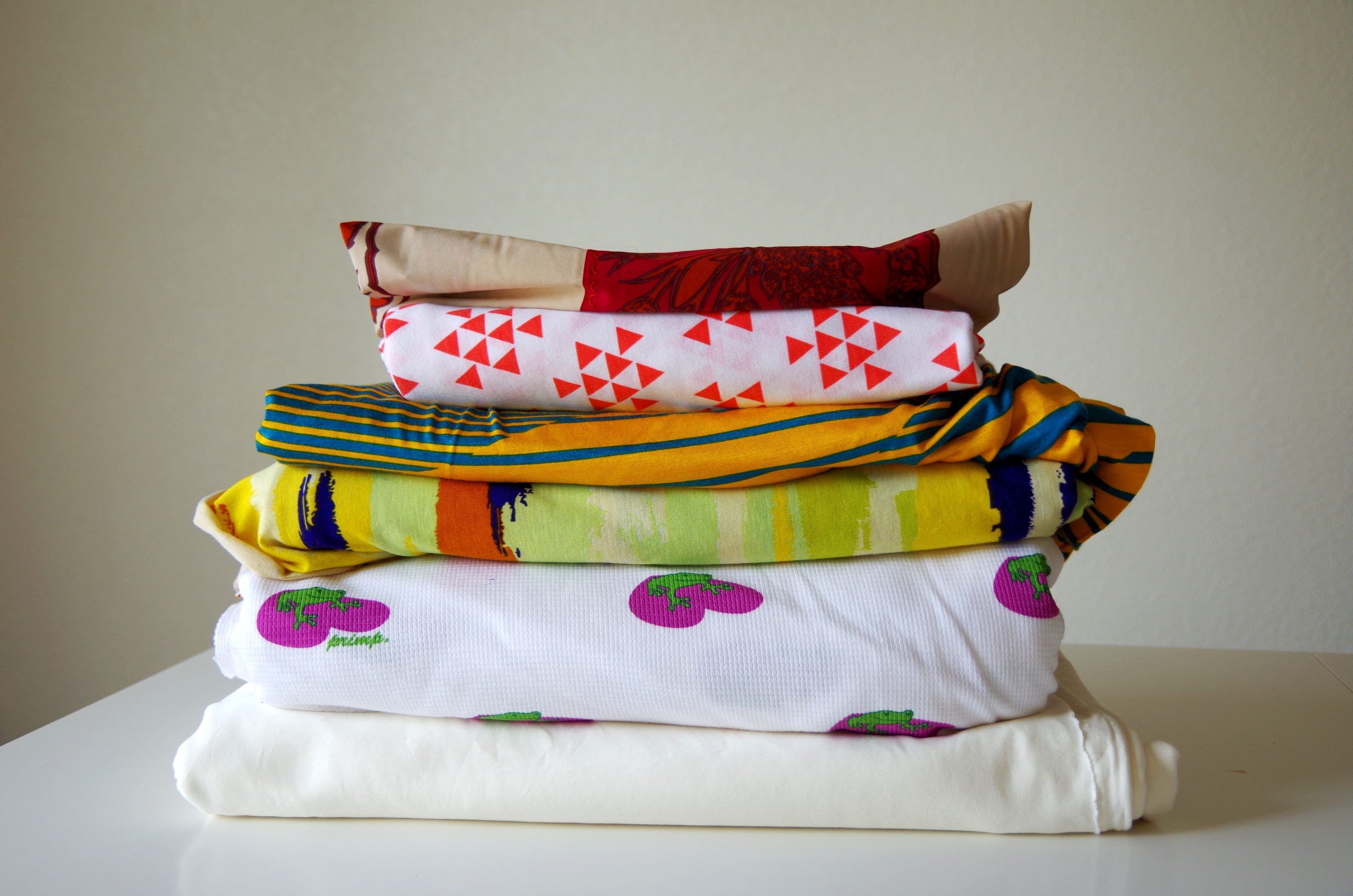 In the past, I would’ve said – leave me alone too long with my computer and all of a sudden boxes of clothes may find their way to our doorstep (not sure how that happens). Now, leave me alone too long with my computer and all of a sudden the deliveries have switched to fabric. It’s knits galore! Plus one silk crepe de chine.