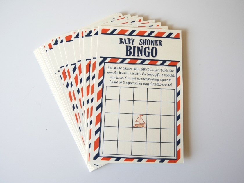 My sis’s baby shower turned out really fun! We wanted to go with something unique and not store bought… so my mom and I got to work :) Thank you to Pinterest, as always, for the endless inspiration. Theme: Nautical (Ahoy! It’s a Boy!) Colors: Blue and Orange Games: Baby Shower Bingo Sperm Toss Tournament Guess Em’s Belly Size (I’m sure there is a better name for this game… but whatevs) :) My favorite part: I’m so glad I found this note on Pinterest before I sent out the invites. Actually, there are a ton of them out there with slightly different wording, but I think it’s is such a cute idea! Especially for my sis — she’s a big reader. She was able to leave the party with a whole collection of children’s books, and each with meaning because they came from all of her friends and family. For the invites, I finally broke out my Cricut! I got it for Christmas and back then I was super excited to start using it… then it …