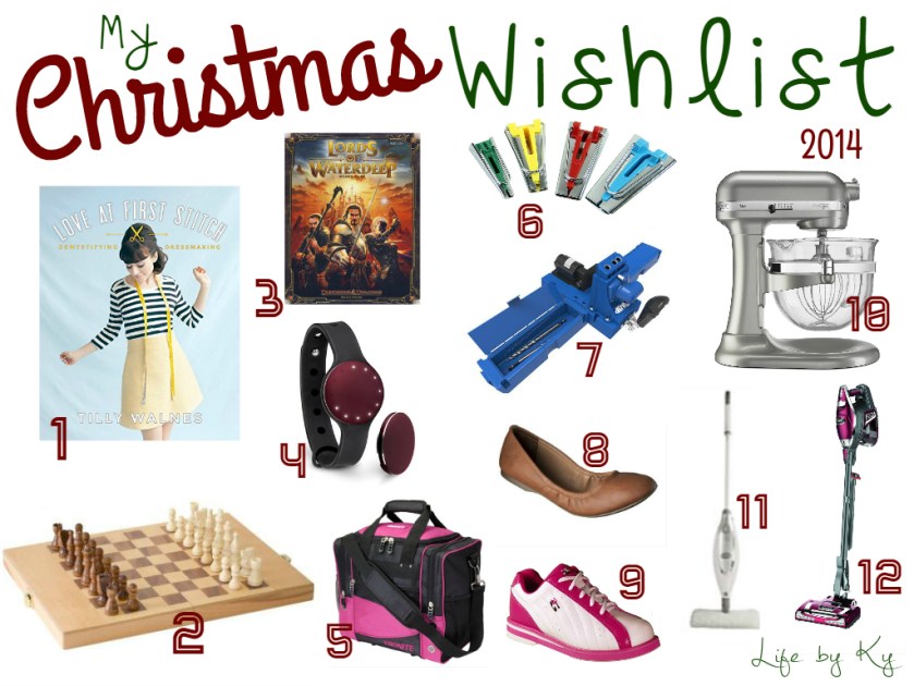 Yes, when it comes to Christmas, I am still a child :) Danny and my mom both ask for lists around Christmastime but to be fair, they do an awesome job on their own, too. Either way, I still have fun coming up with plenty of ideas for them. I like to be surprised, after all, so I figure if they have plenty of choices, I’ll still be surprised… right?! :) 1 | Love at First Stitch by Tilly Walnes | Tilly is so full of inspiration! 2 | Chess board | Shouldn’t everyone learn how to play chess at some point in their life? 3 | Lords of Waterdeep Game | Love this game. And now that we’ve moved across the country from our friend who had it… here it is :) 4 | Misfit Shine | Okay, this one isn’t really fair… I already know I’m getting it. :) But I’m super excited about it! My best friend got me this for my B-Day/Christmas (yes, my b-day was 6 months ago… but I’m …